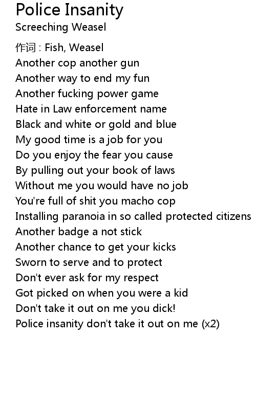 | Police insanity don' t take it out on me x2 |
