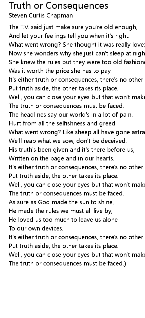 It's either truth or consequences, there's no other way; |