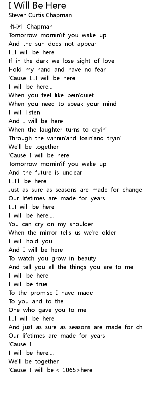 | [04:03.80] | 'Cause I will be <-1065>here |