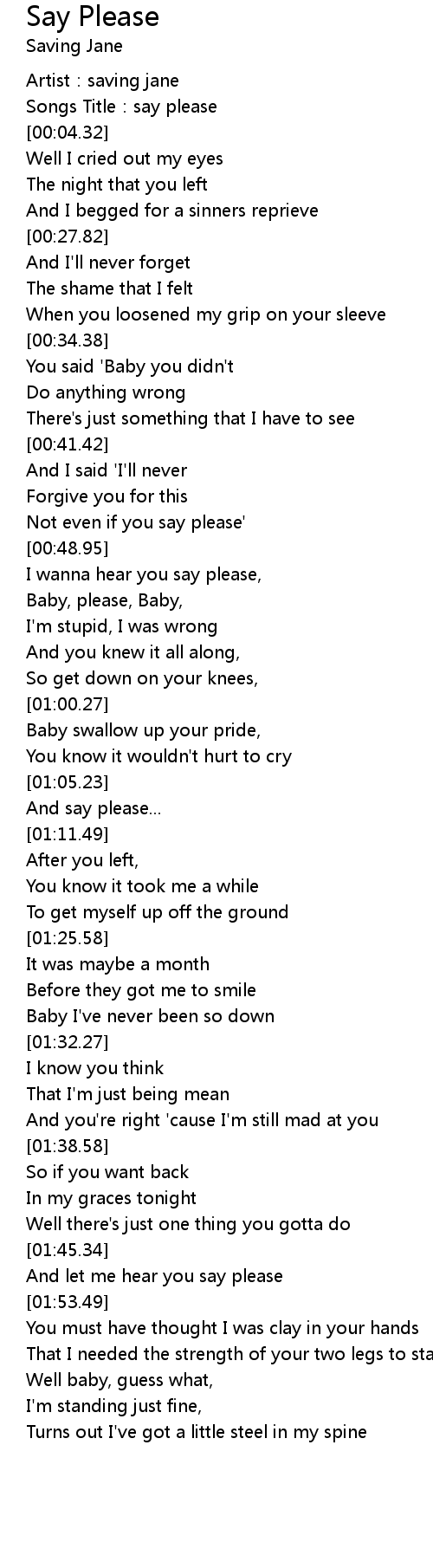 | [02:20.41] | That I needed the strength of your two legs to stand |