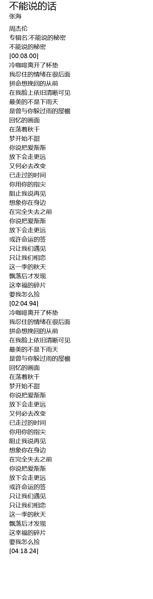 | [03:34.44] | zǔ zhǐ wǒ shuō zài jiàn |
