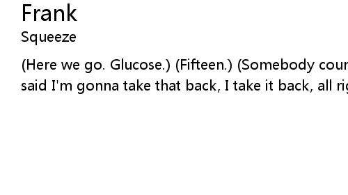 (Here we go. Glucose.) (Fifteen.) (Somebody count.) (How about a flat?) (No, I said I'm gonna take that back, I take it back, all right?)