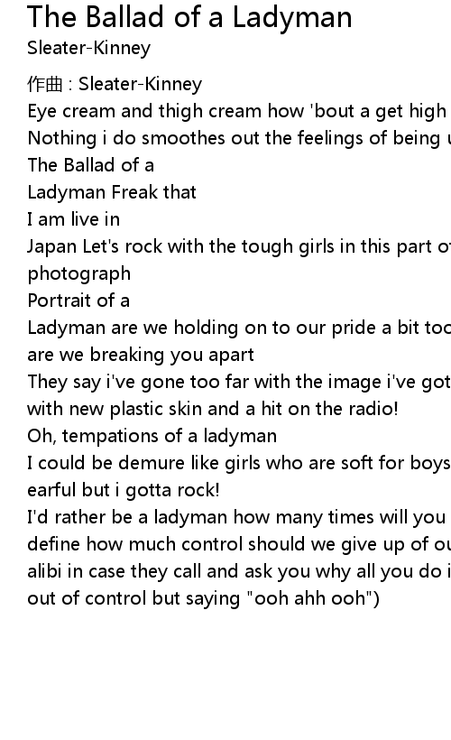 | I' d rather be a ladyman how many times will you decide how many lives will you define how much control should we give up of our lives You sit at home with an alibi in case they call and ask you why all you do is go " ooh ahh ohh" you' re out of control but saying " ooh ahh ooh" |
