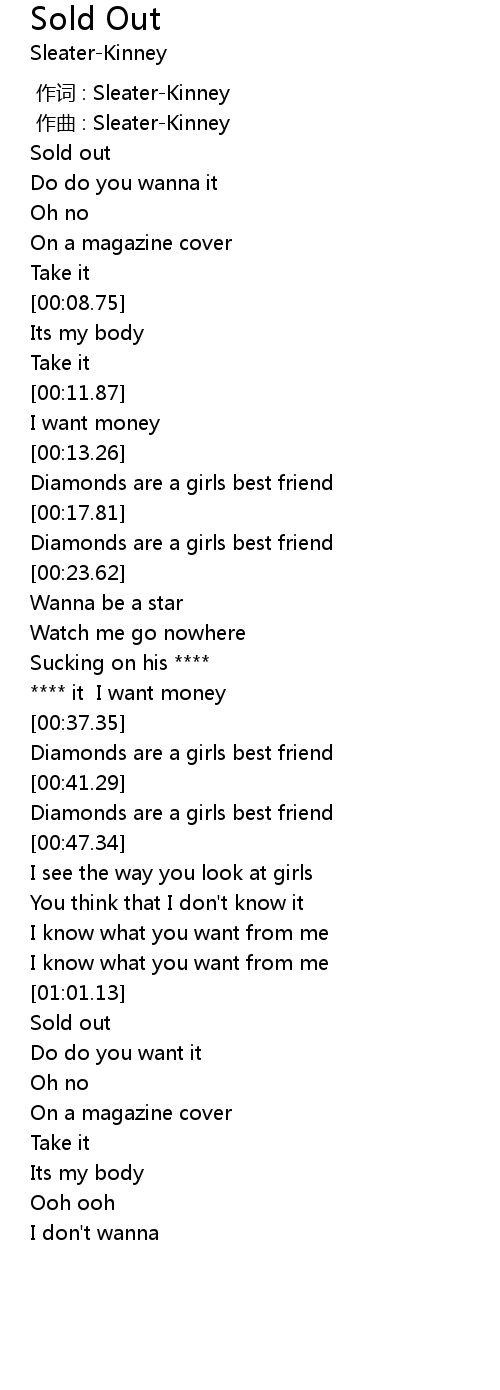 | [00:01.000] | 作曲 : Sleater-Kinney |