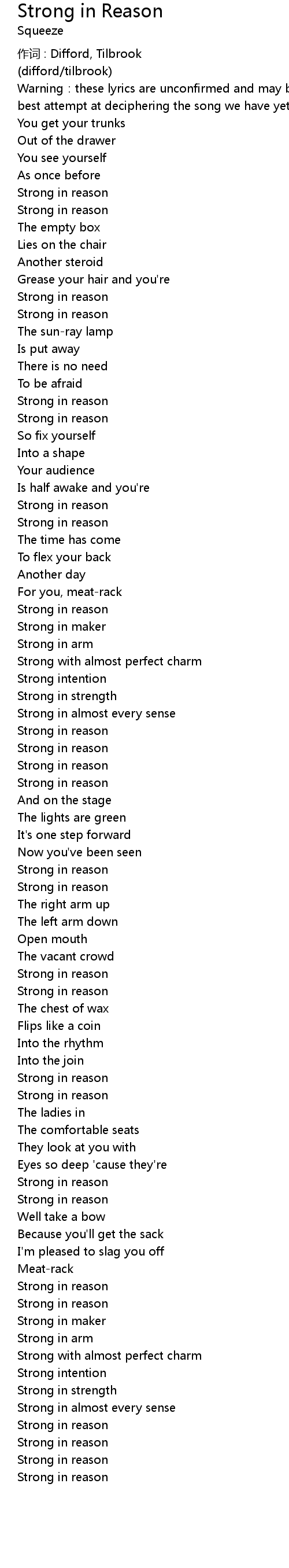 | Song | Strong in Reason |