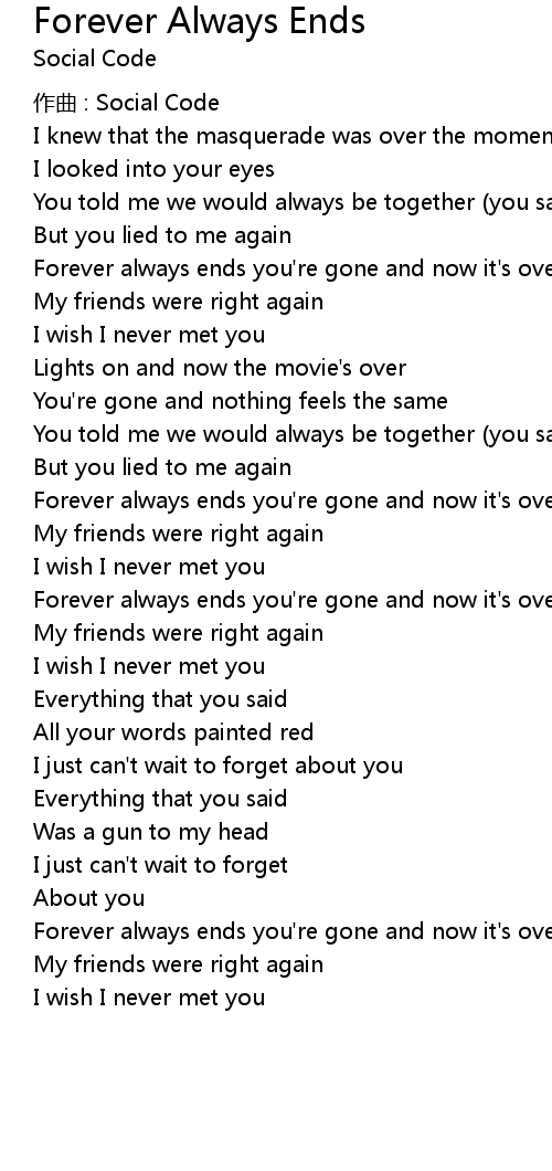 | Forever always ends you're gone and now it's over | |