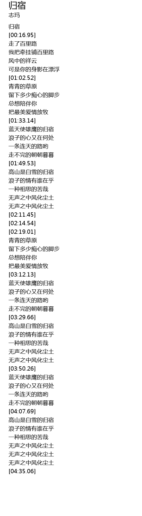 | [02:43.98] | qīng qīng de cǎo yuán |