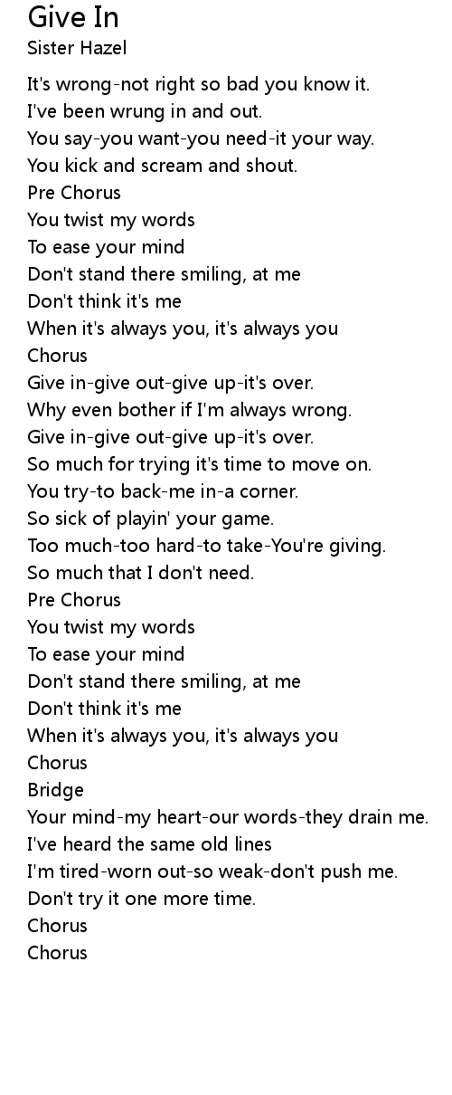 Give In Lyrics