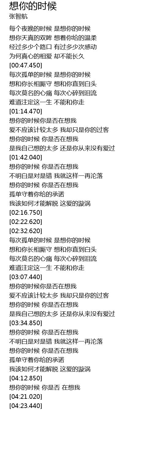 | [00:47.720] | mei ci gu dan de shi hou shi xiang ni de shi hou |
