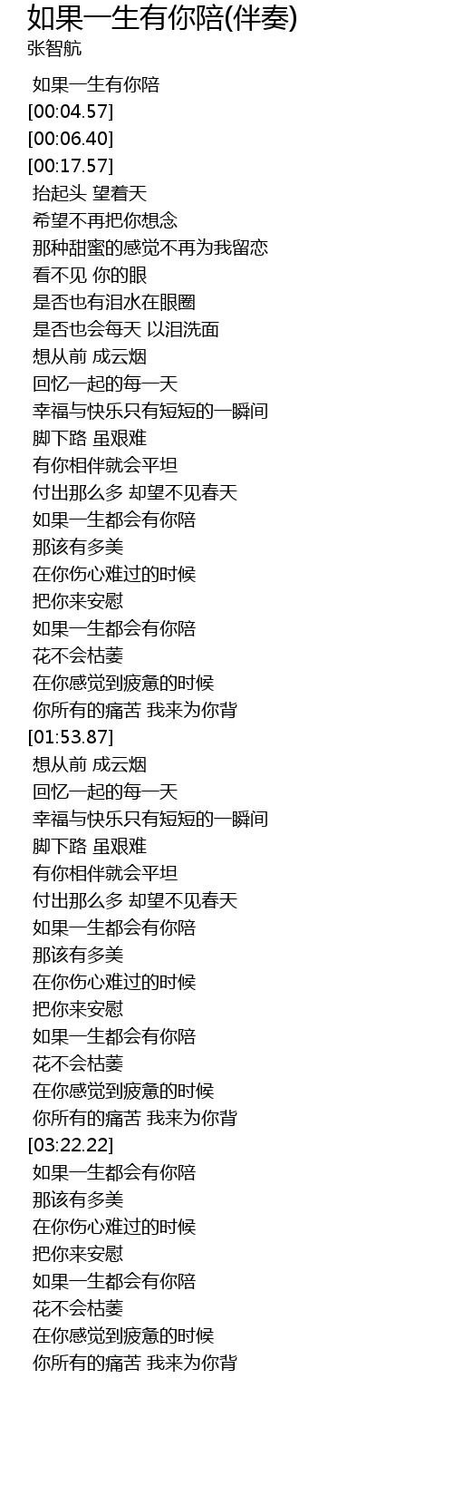 | [00:03.01] | rú guǒ yī shēng yǒu nǐ péi |