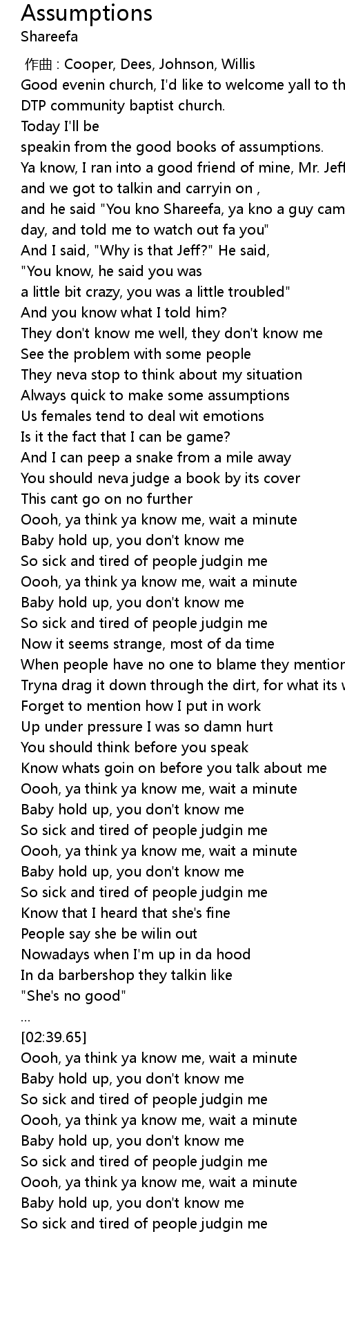 | [03:12.46] | Oooh, ya think ya know me, wait a minute |