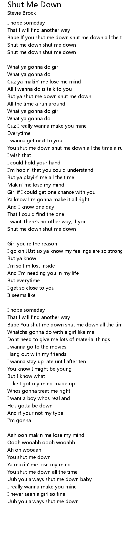 Shut me down shut me down (Uuuh oooh uhuh uh uh baby) [CHORUS] |