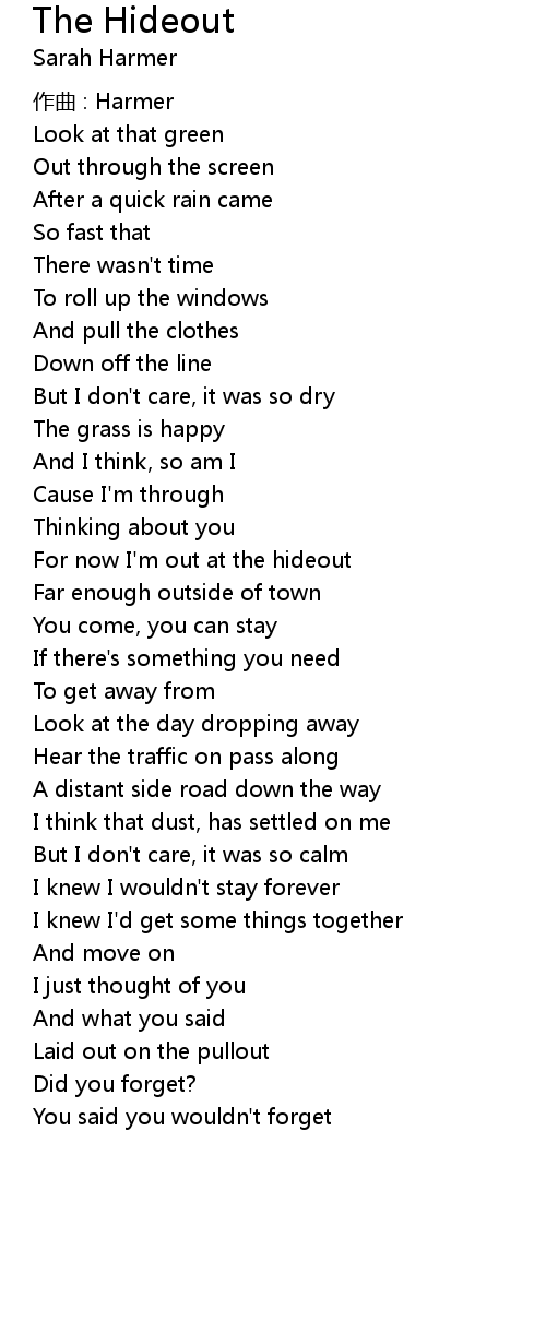 | For now I' m out at the hideout | |