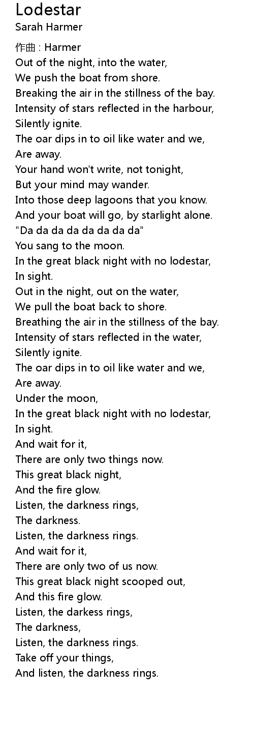 | In the great black night with no lodestar, | |