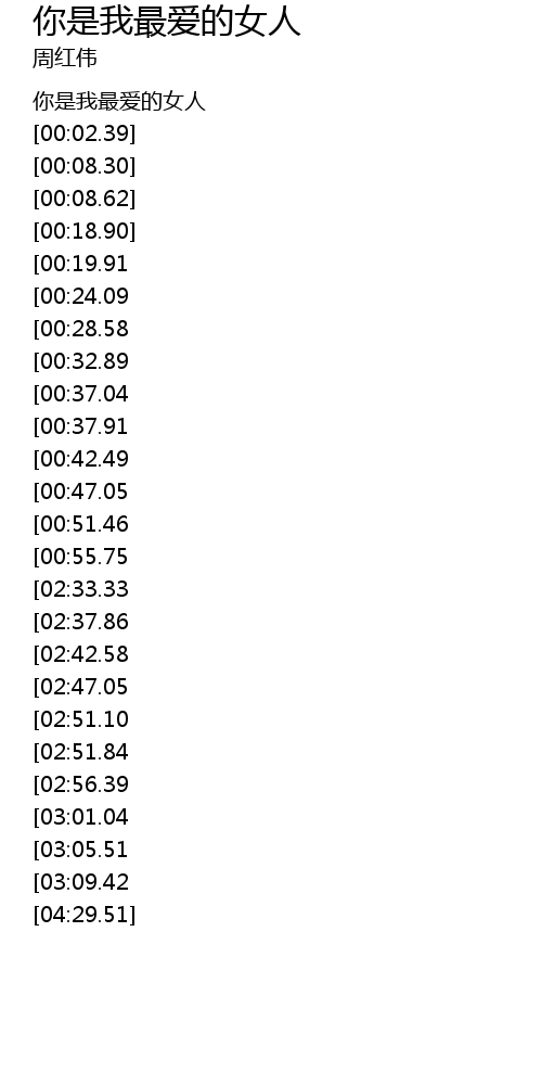 | [03:28.86][02:33.33][00:58.78] | 你是我最爱的女人 |