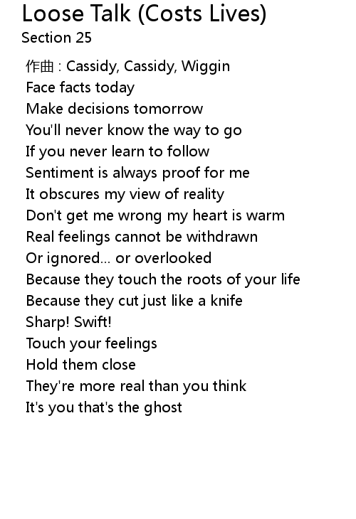 | [00:00.000] | zuo qu : Cassidy, Cassidy, Wiggin |