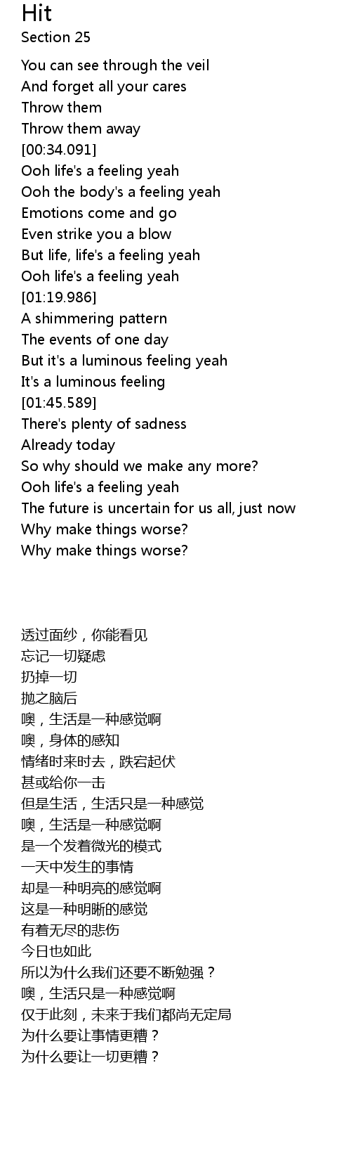Ooh life's a feeling yeah |