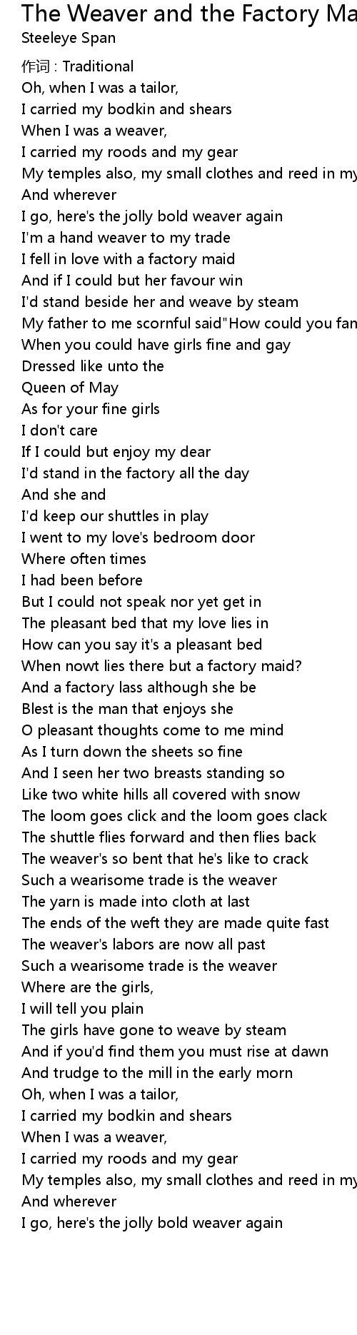 | My father to me scornful said" How could you fancy a factory maid?" | |