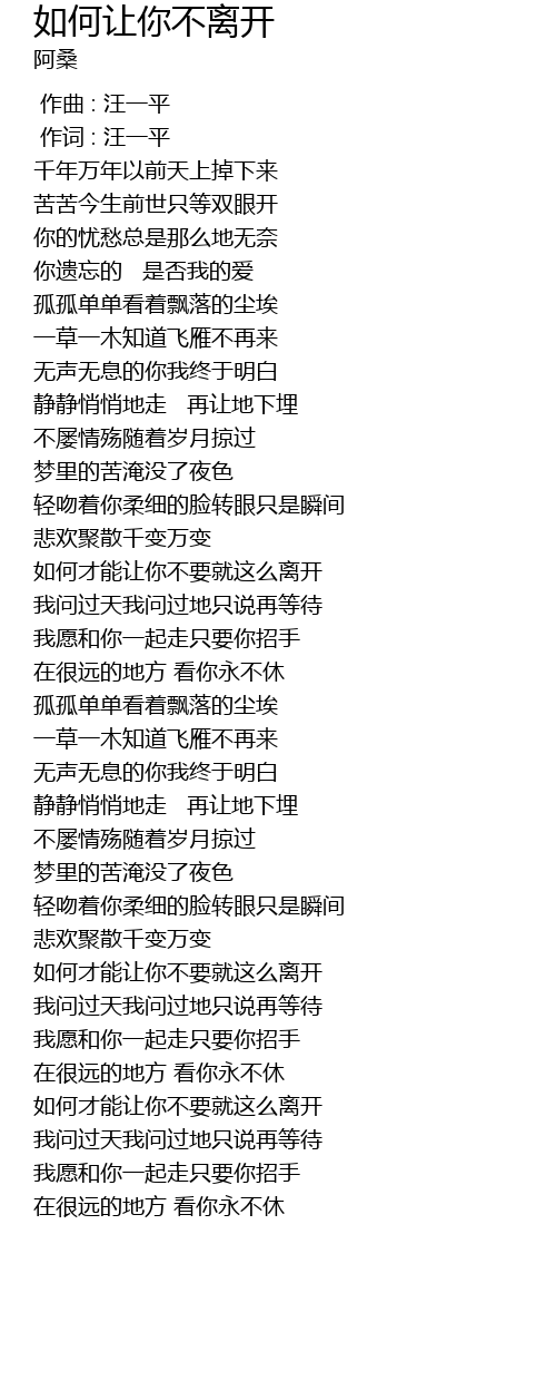 | [03:35.160] | 如何才能让你不要就这么离开 |