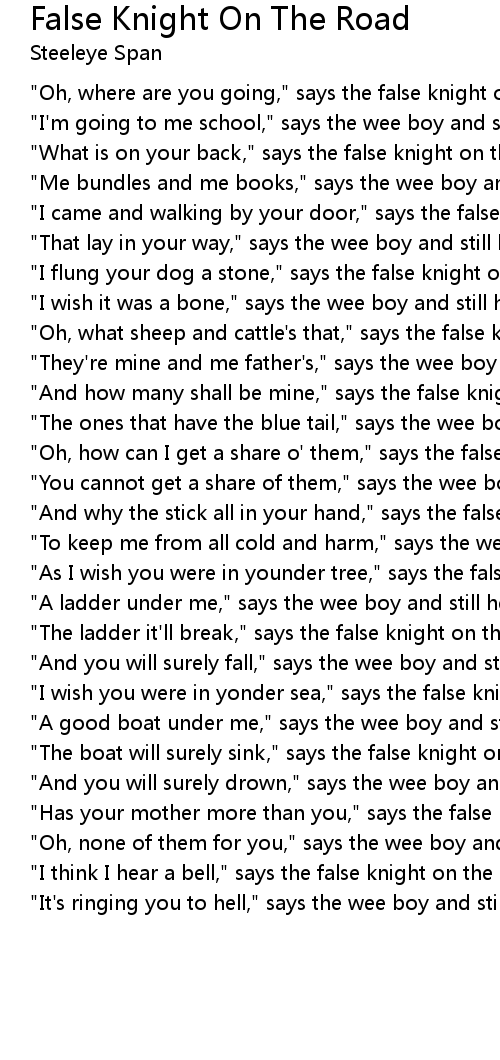 "Oh, what sheep and cattle's that," says the false knight on the road