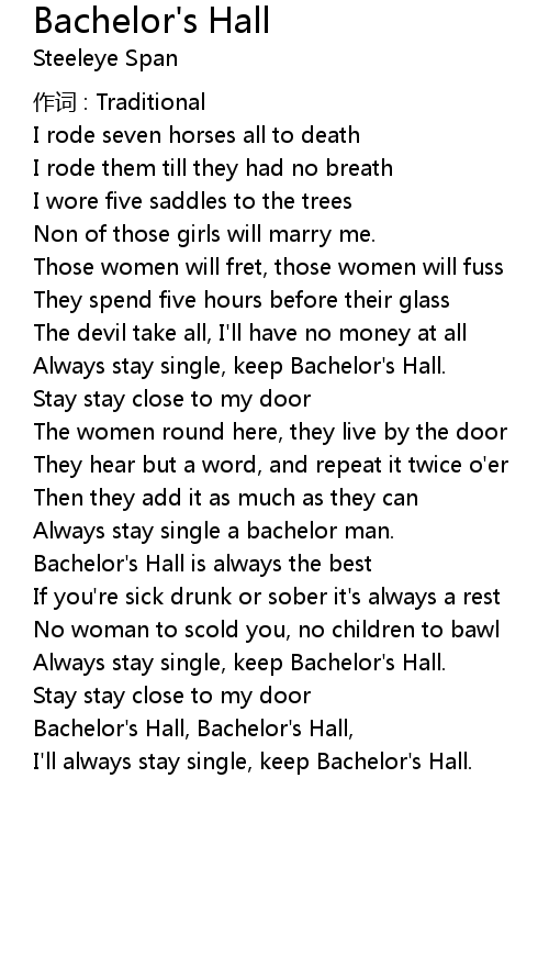| I' ll always stay single, keep Bachelor' s Hall. |