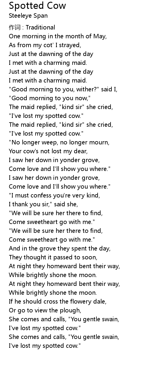 | I' ve lost my spotted cow." |