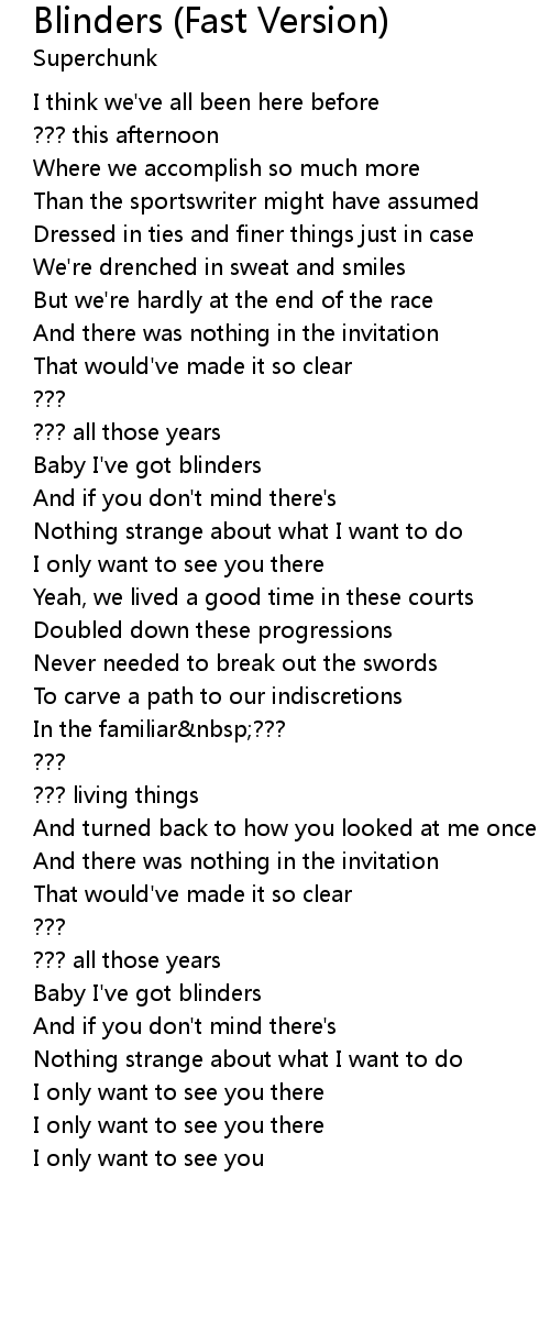 Baby I've got blinders |
