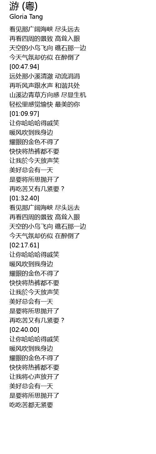 | [00:26.54] | kàn jiàn nà guǎng kuò hǎi xiá jìn tóu yuǎn qù |