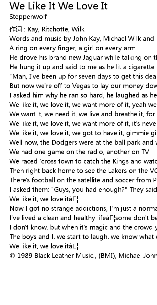 | Words and music by John Kay, Michael Wilk and Rocket Ritchotte | |