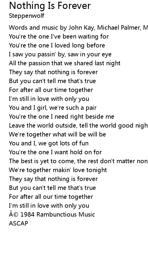 | They say that nothing is forever | |