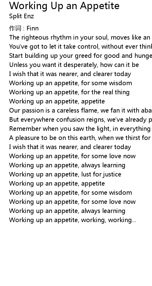 | Working up an appetite, appetite | |