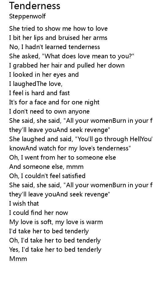 No, I hadn't learned tenderness |