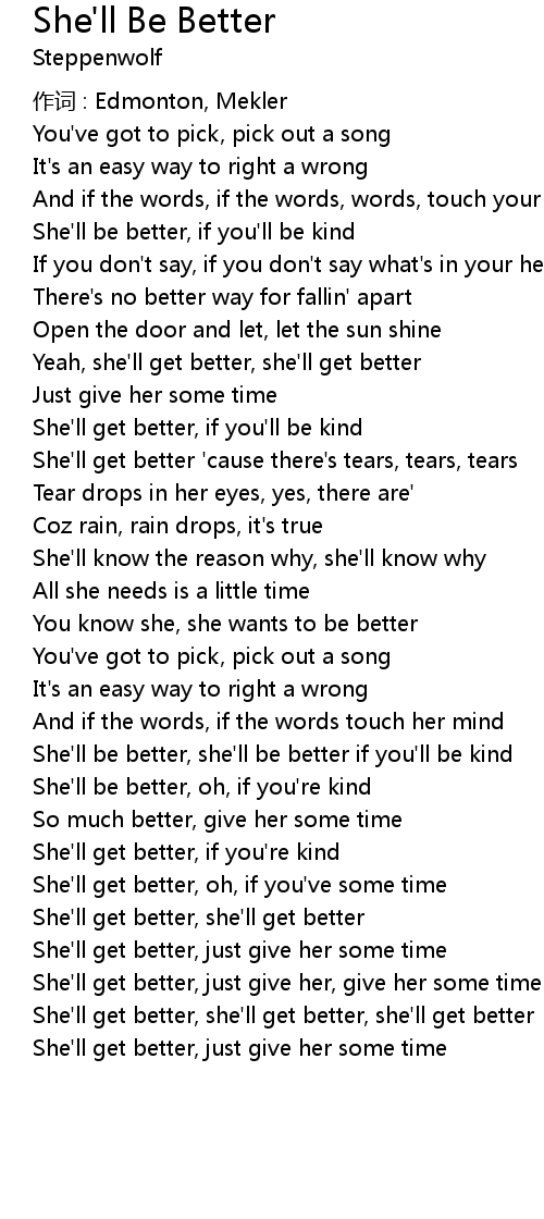| She' ll be better, she' ll be better if you' ll be kind | |