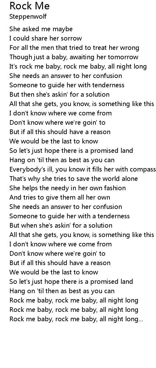 It's rock me baby, rock me baby, all night long |