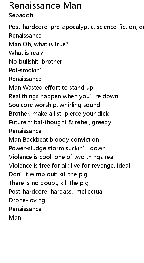 | Man Backbeat bloody conviction | |