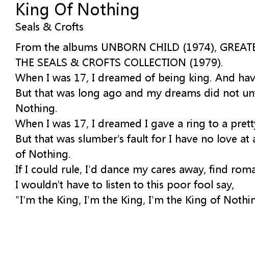 But that was slumber's fault for I have no love at all. And I'm still the King of Nothing. |