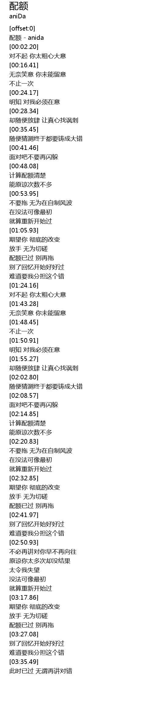 | [00:00.00] | 配额 - anida |