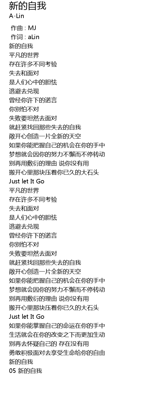 | [00:01.89] | 新的自我 |