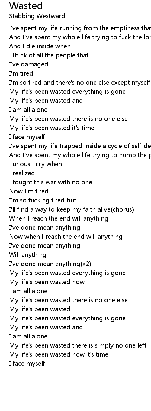 I'm so tired and there's no one else except myself to blame(chorus) |