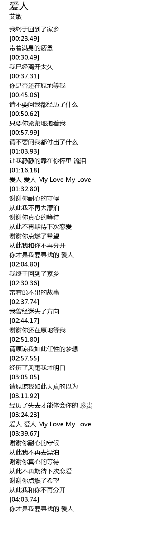 | [03:26.93] | 爱人 爱人 My Love My Love |