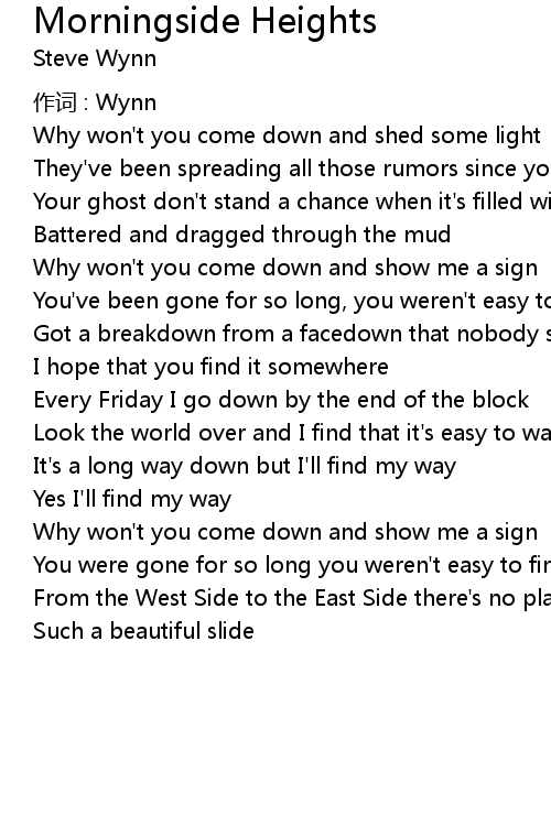 | Song | Morningside Heights |