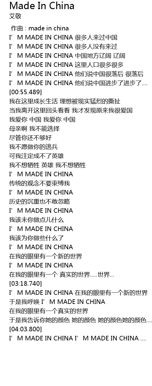 [04:16.339] I’M MADE IN CHINA I’M MADE IN CHINA ....