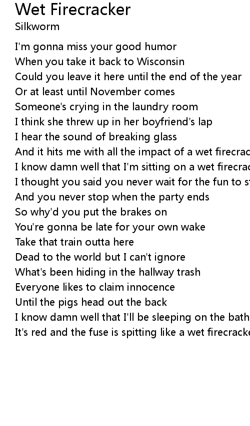 | I know damn well that I'm sitting on a wet firecracker | |