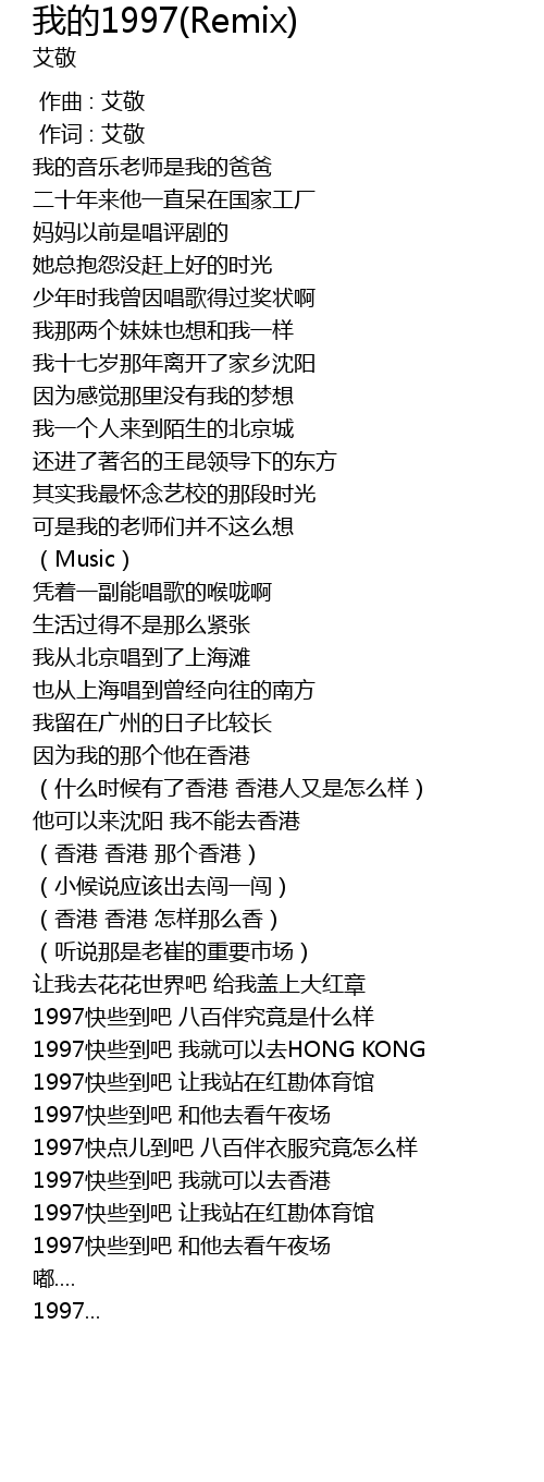 | [03:54.180] | 1997快些到吧 我就可以去HONG KONG |