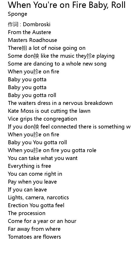 | Song | When You're on Fire Baby, Roll |