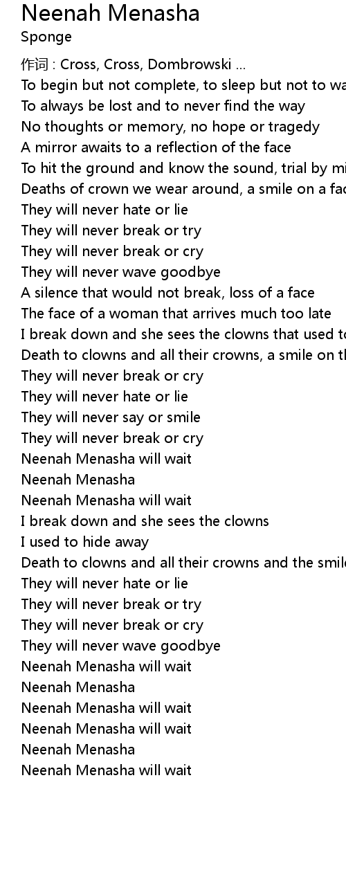 | 作词 : Cross, Cross, Dombrowski ... | |