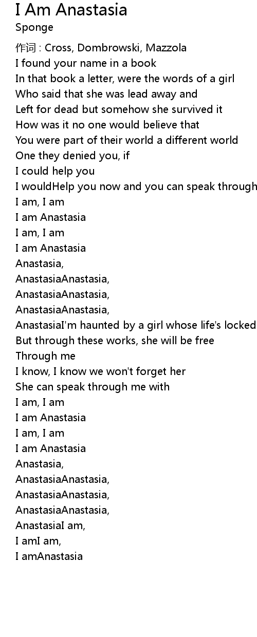 | AnastasiaI am, | |