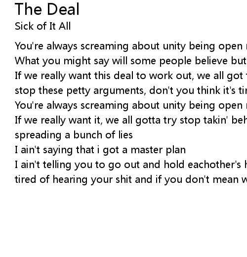 I ain't telling you to go out and hold eachother's hands just saying that we're tired of hearing your shit and if you don't mean what you say then don't say it |