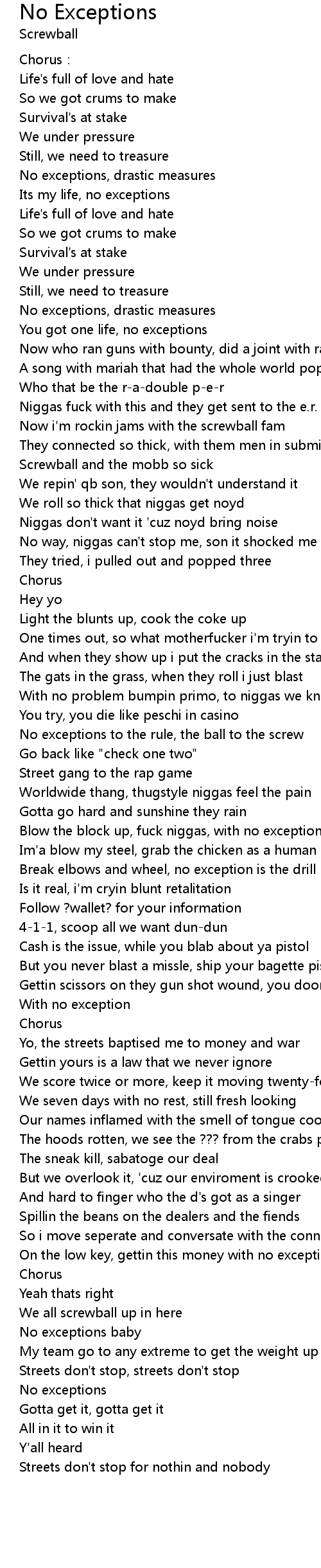 | Blow the block up, fuck niggas, with no exceptions | |