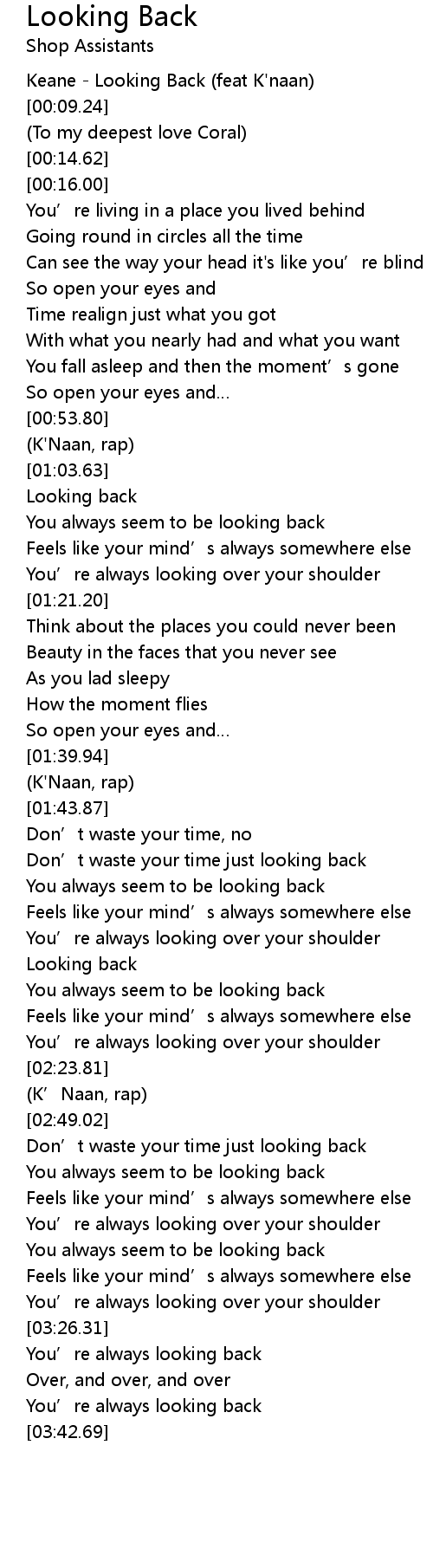 | [00:00.00] | Keane - Looking Back (feat K'naan) |